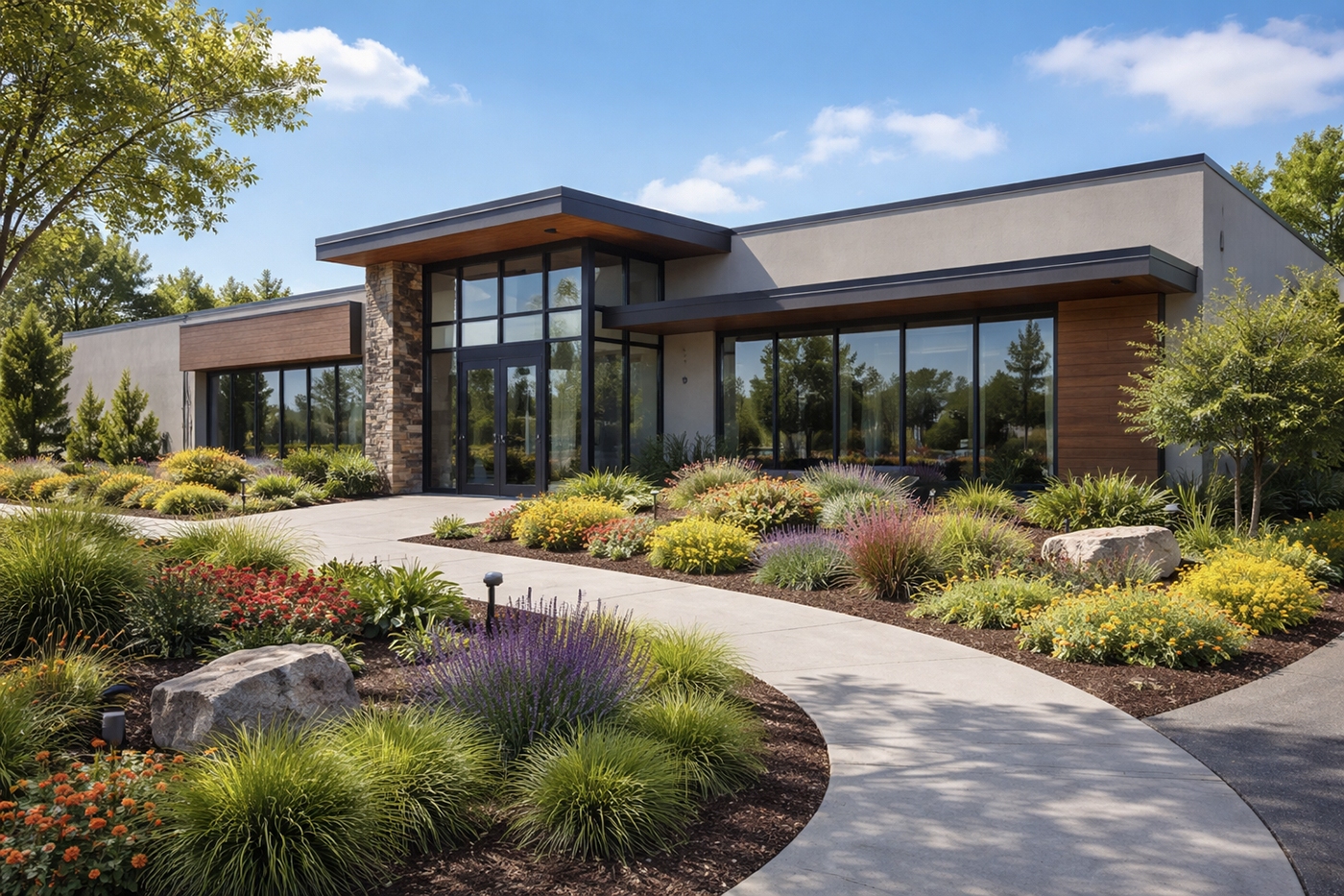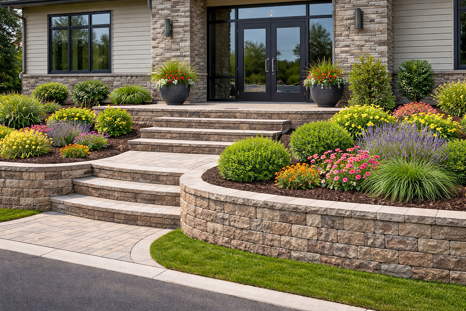We provide expert hardscape installations that add structure, durability, and visual interest to commercial landscapes. Hardscaping adds functionality to a commercial property by defining usable outdoor spaces such as walkways and retaining walls.